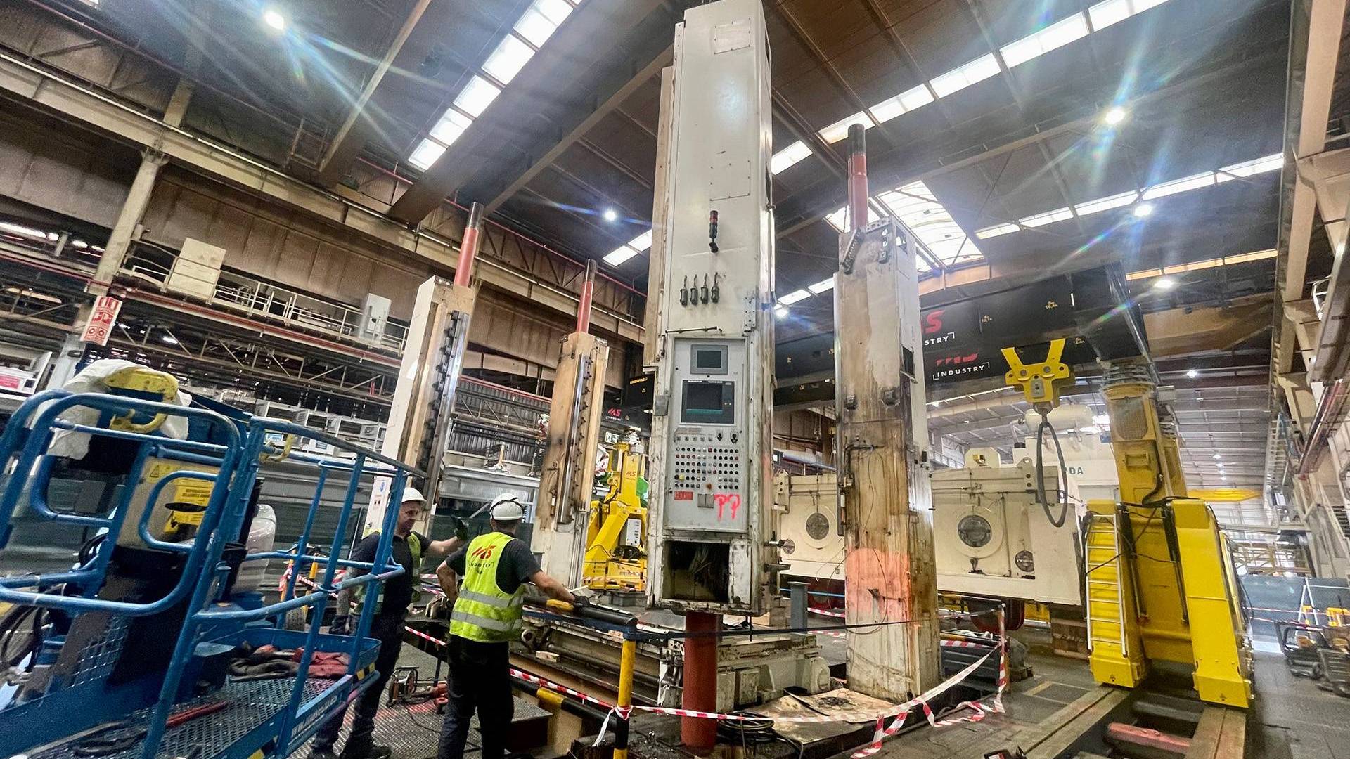 Transport zdemontowanych elementow prasy Fagor 2000 ton na stanowisku serwisowym.